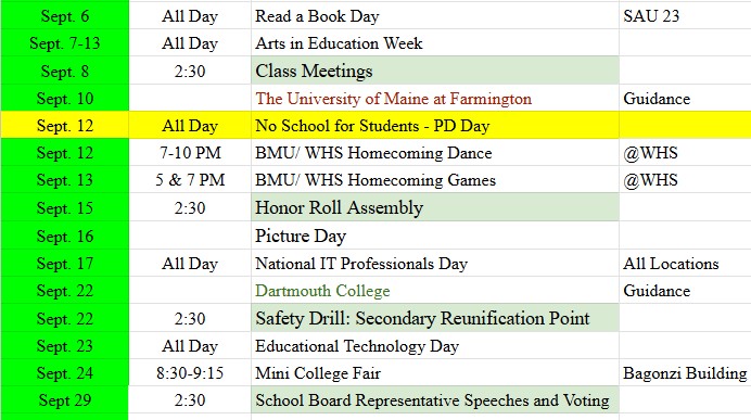 September is packed with events, celebrations, and opportunities for our Woodsville High School students, staff, and community! Take a look at whatβs ahead: